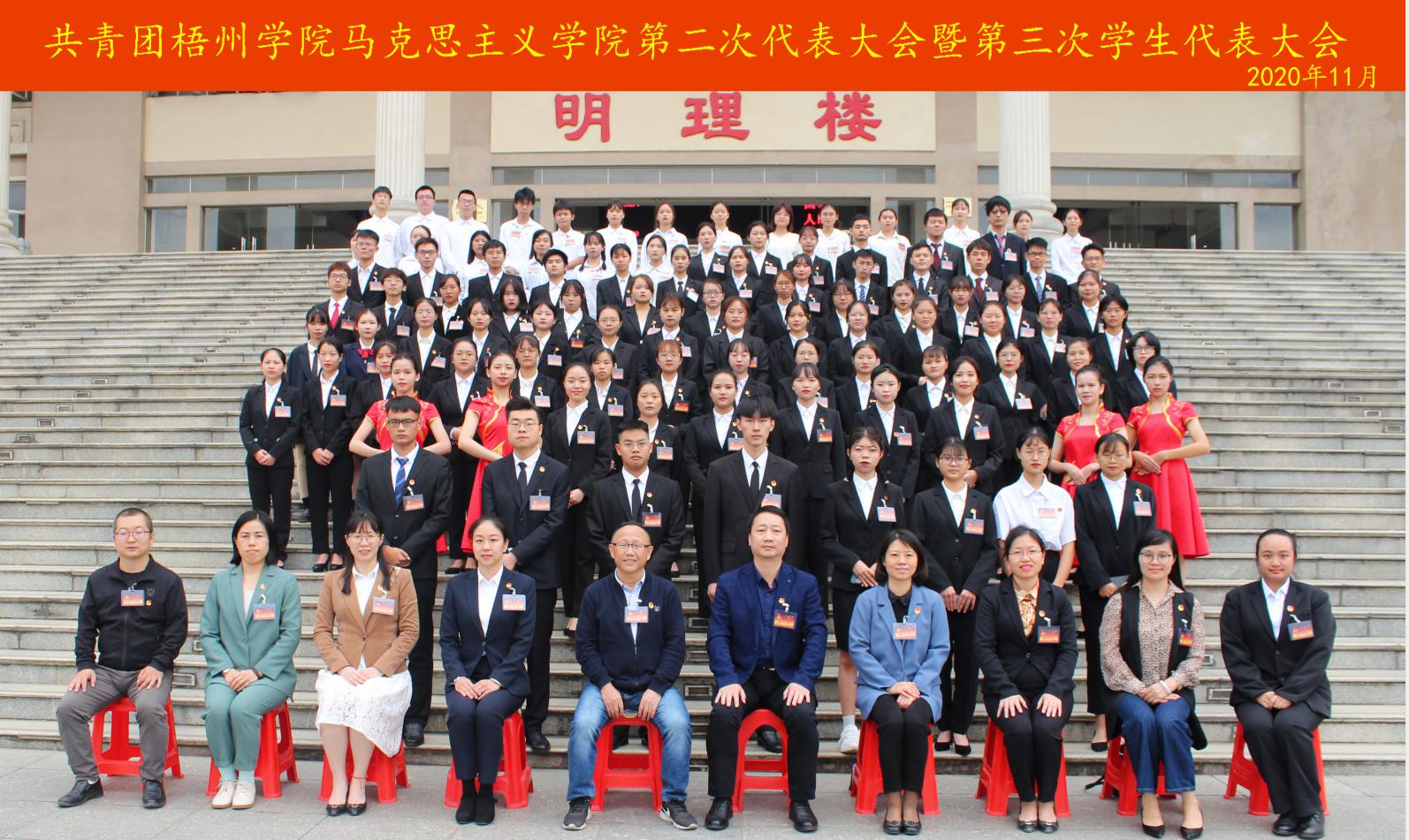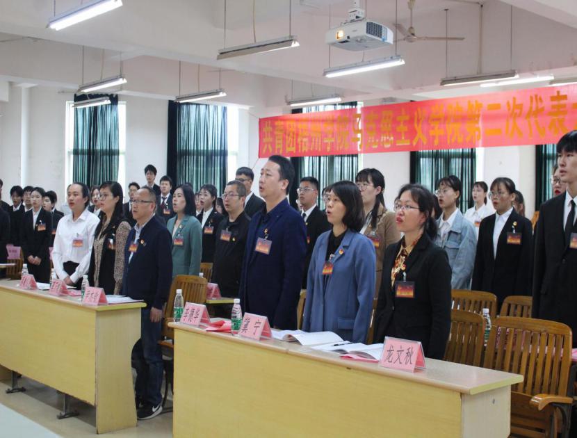 11月14日下午,共青团梧州学院马院第二次代表大会暨第三次学生代表大会成功召开。共青团梧州学院委员会书记李德华老师,马克思主义学院党总支书记冀宁老师、院长尹杰钦老师、党总支副书记龙文秋老师、党政办公室主任莫万姣老师、团委书记冼春妮老师、教师代表蔡敏仪,以及各二级学院团委书记、校学生会代表、各二级学院团委•学生会代表受邀出席大会开幕式。