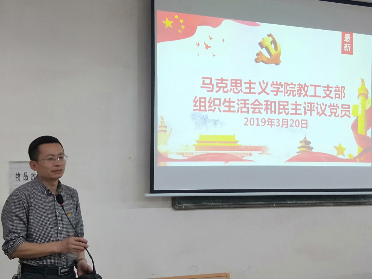 2019年3月20日下午16:00,马克思主义学院教工支部全体党员在明理楼M505召开2018年度基层教工支部组织生活会和开展民主评议党员。会议由教工党支部书记李健敏同志主持。