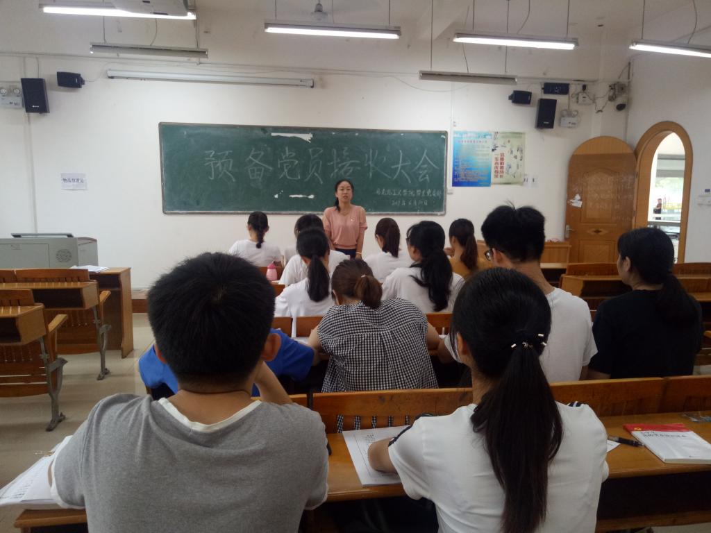 2019年6月10日上午,马克思主义学院学生党支部预备党员接收大会在明理楼M502召开。学生党支部书记冼春妮及全体学生党员参加此次会议,会议由卢雯雯主持。