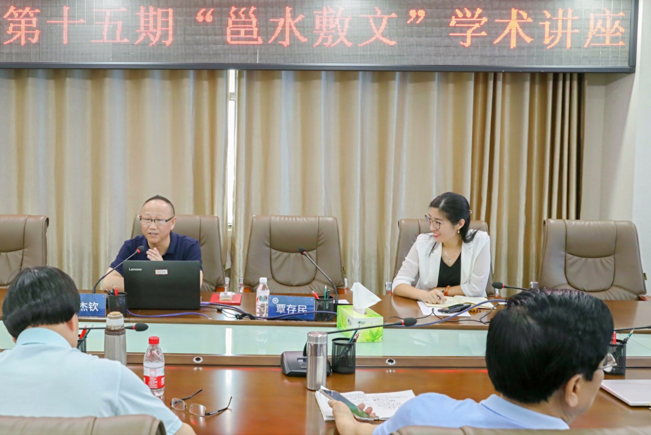 尹杰钦教授结合本人在国家社科基金申报中的经历,从正确理解教学共性与个性的逻辑关系、理性认知教学与科研的逻辑关系、国家社科基金项目介绍和国家社会基金项目申报标书制作四个方面逐一展开专题讲座。