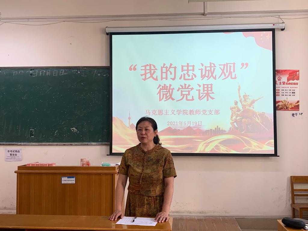 5月19日下午马克思主义学院教师党支部开展“我的忠诚观”微党课活动。22名党员以图文并茂的PPT分别上党课,从党史、新中国史、社会主义发展史、改革开放史、梧州党史人物、《党章》、党史研究、教学科研等多个角度讲述了自己的忠诚观。
