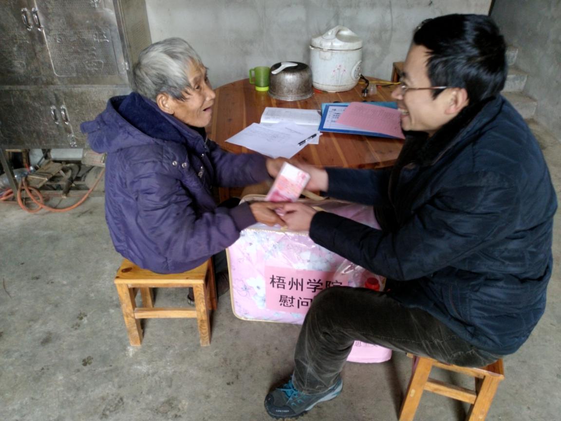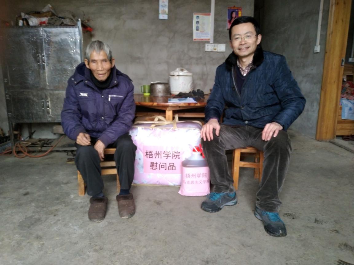 马克思主义学院党总支副书记(主持工作)王振宇来到马克思主义学院定点帮扶户吴柱宗老人家里,带来了学校的慰问品和新春祝福。