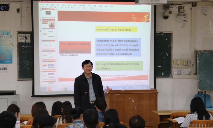 据悉,我校从本学期开始,在2017级的8个班中对《毛泽东思想和中国特色社会主义理论体系概论》开设思政课双语教学,双语教学贯穿整个学期课程,目前由吴昊老师主讲。
