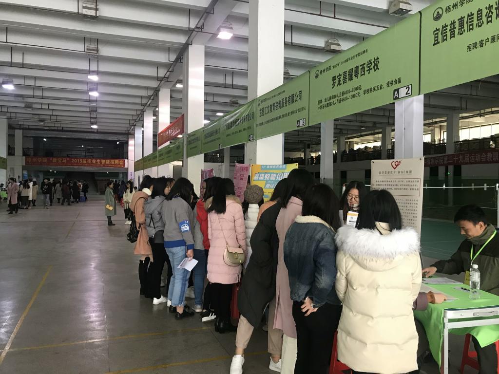 12月16日上午,由梧州学院教师教育学院、宝石与艺术设计学院、马克思主义学院共同举办的2018年冬季毕业生“青聘果”智能招聘会在体育馆一楼举行。本次招聘会利用“青聘果”智能招聘系统,为2015级毕业生提供方便、快捷和有效的精准就业信息服务。