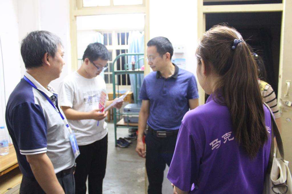 9月14日晚,马克思主义学院党总支书记王振宇,副书记龙文秋,副院长张朝松、张文俊,辅导员冼春妮,19哲学班班主任刘寒刚以及学生干部们一起走访了2019级学生宿舍。