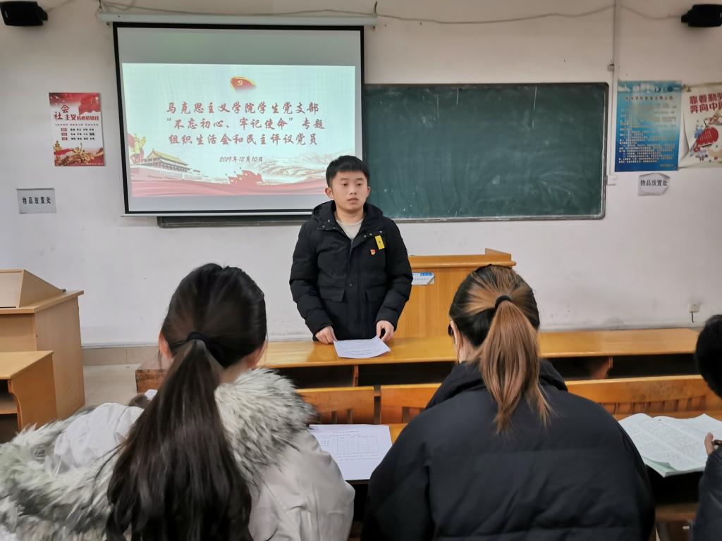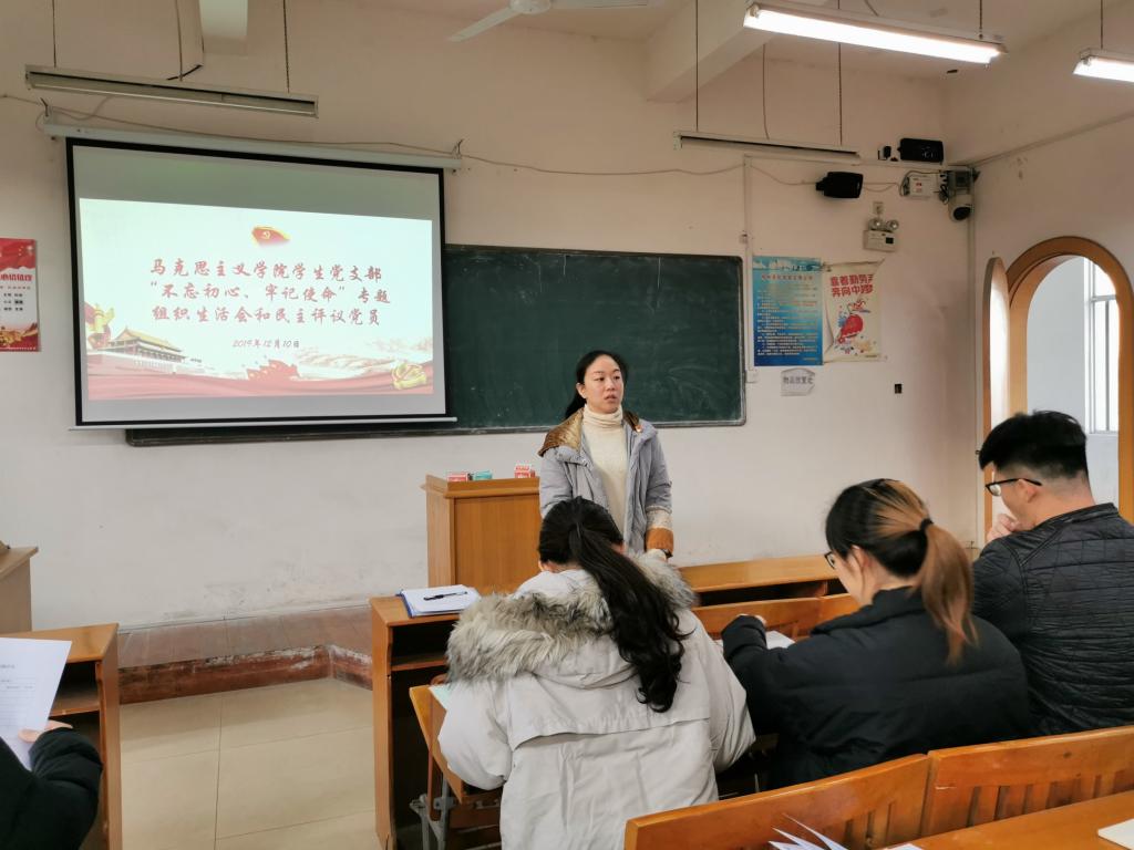 按照“不忘初心,牢记使命”主题教育工作安排,12月10日下午,马克思主义学院学生党支部在中楼502教室召开“不忘初心,牢记使命”专题组织生活会和民主评议党员大会。