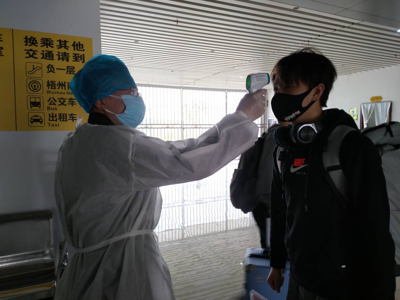 我校积极响应梧州市肺炎疫情体温检查站联防联控工作通知精神,组织教职工党员参加梧州志愿活动,为对进入梧州市的人员检查身份证、检测体温,对体温超过37.3度的人员及湖北籍、有湖北旅居史或有与湖北籍人员接触史人员进行登记等工作。