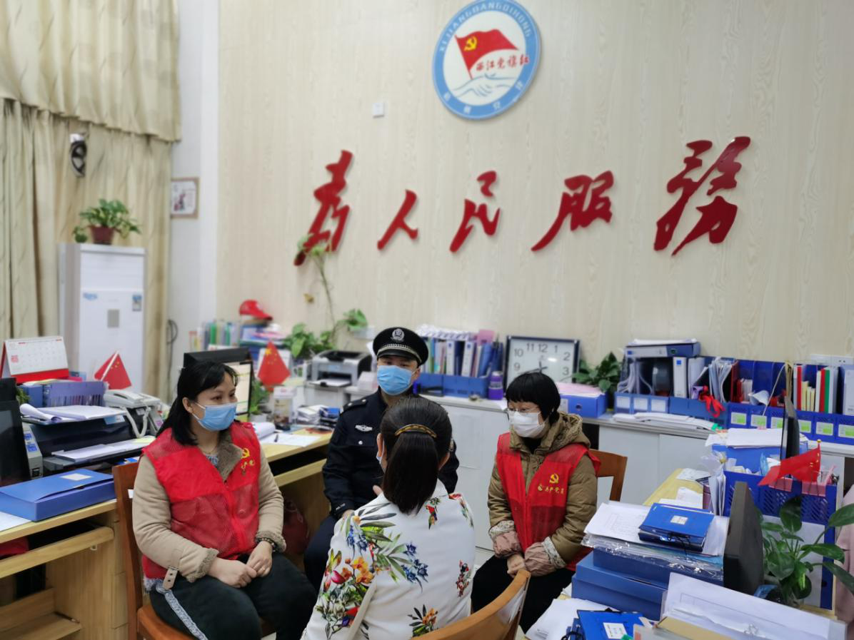 3月6日马克思主义学院教师支部书记李健敏和梧州市恒祥社区党委书记彭颖研、大塘派出所民警莫鹏、恒祥社区主任欧彩云一起探讨集中隔离期间党员发挥带头作用