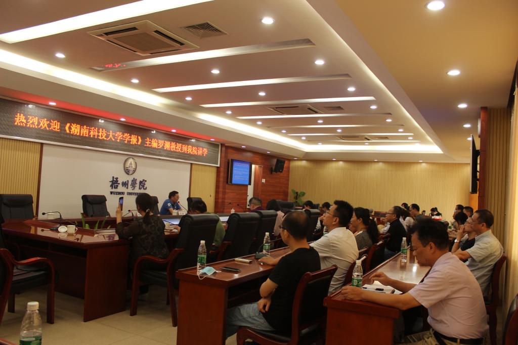7月13日,《湖南科技大学学报》主编罗渊教授应马克思主义学院邀请在明理楼八楼第一会议室做了一场题为《学术论文常见偏误漫谈》的学术报告。学院领导班子和学院专兼职教师参加本次报告会。报告会由院长尹杰钦教授主持。