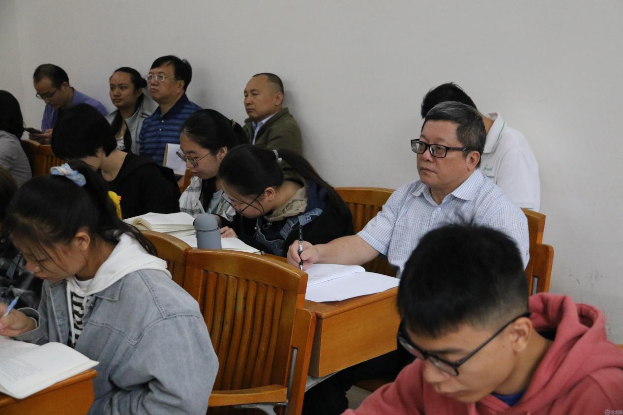 杨校长一行先到明理楼M502教室听了张朝松副院长的《中国哲学专题》,随后调研我院的办公用房和科研用房情况,到考研自习室看望了备考的学生,勉励他们安心备考,祝愿考研学子都能考上理想的学校。