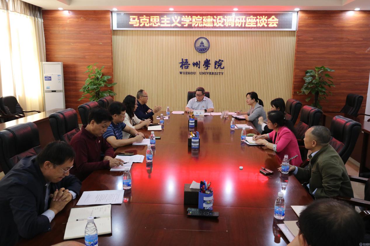 杨校长在讲话中充分肯定了我院这些年来付出的努力和取得的成绩,逐一回应了我院提出的在建设和发展中遇到的问题。对于我院如何开展下一步工作,他从四个方面提出意见:一是要准确把握新时代高校马克思主义学院建设的新要求,高标准制定好学院的“十四五”发展规划;二是要认真学习贯彻习近平总书记在学校思想政治理论课教师座谈会上的重要讲话精神,牢记“六个要求”,遵循“八个统一”,更好地担负立德树人的使命;三是思政课要多关注、多挖掘有广西特色、梧州特色、校本特色和地域特点的教学案例和素材并融入到教学实践中,进一步推进部校共建马克思主义学院;四是要准确把握新时代高校马克思主义学院服务地方的新机遇,结合我校应用型人才培养目标,进一步提升科研水平和社会服务能力。他表示,学校将全力支持学院的建设,力争在“十四五”期间把学院建设成为区内有一定特色、有一定影响力的马克思主义学院。