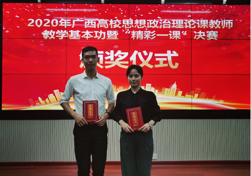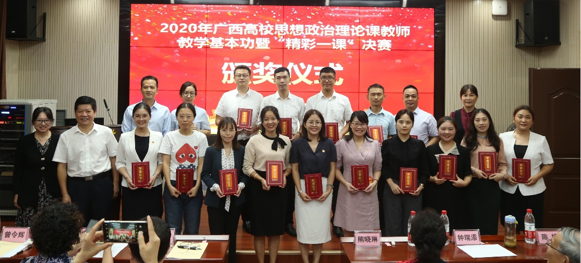 9月26日,由自治区党委教育工委、教育厅主办,广西大学、广西高校思想政治理论课骨干教师研修基地承办的2020年广西高校思想政治理论课暨“精彩一课”比赛决赛在广西大学马克思主义学院举行。今年全区高校共有210名教师参加“精彩一课”比赛,我校叶子琛、张亚敏老师获得青年组二等奖,邵晋芳老师获得青年组三等奖。