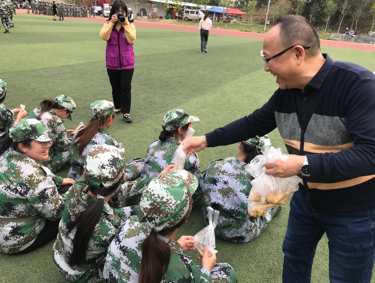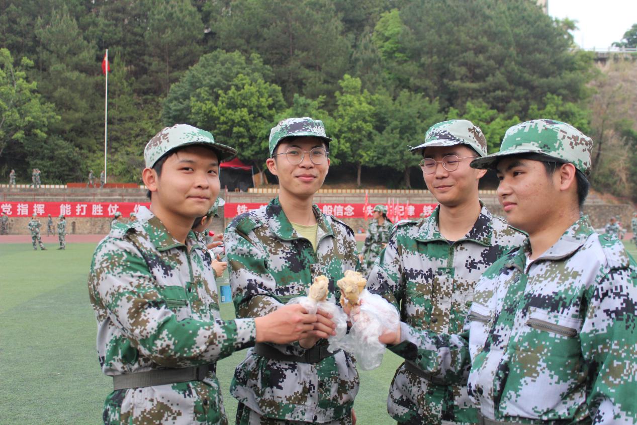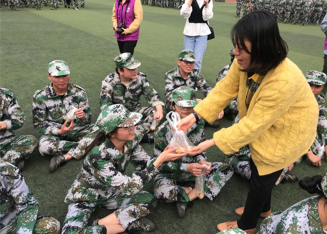 下午5点,我院领导、老师来到20级学生的训练方队,认真观看新生的训练情况。当同学们看到老师和学长、学姐们时,他们用热情洋溢、响亮清澈的问候声表示欢迎。院领导对教官们的耐心指导与辛苦付出表示感谢,对军训中刻苦训练的同学致以亲切的慰问,同时还叮嘱同学们要珍惜这次军训的时光,磨练意志,不断充实自我。最后由学生干部协助老师们为我院军训的教官以及全体同学送上慰问小礼品——五香鸡腿。同学们吃着香喷喷的鸡腿脸上洋溢着幸福的笑容,仿佛在军训中的劳累感已然褪去。