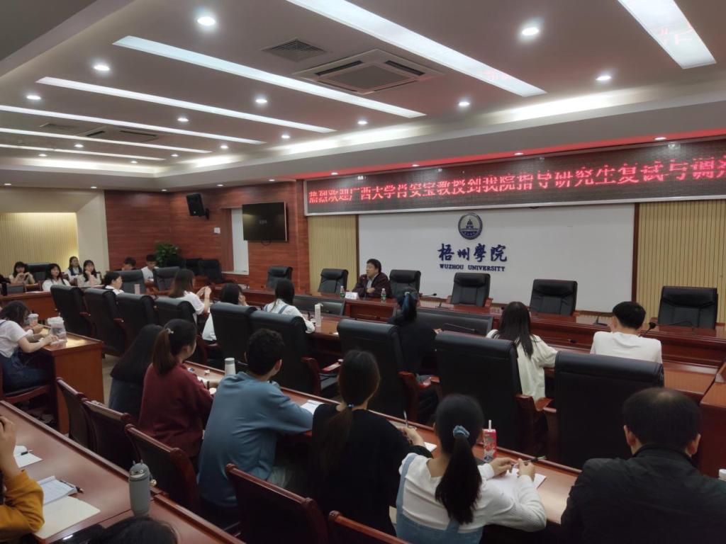 3月27日,广西大学马克思主义学院副院长肖安宝莅临我院,在明理楼八楼第一会议室就研究生调剂与复试提供了详细讲解和宝贵的指导性意见。