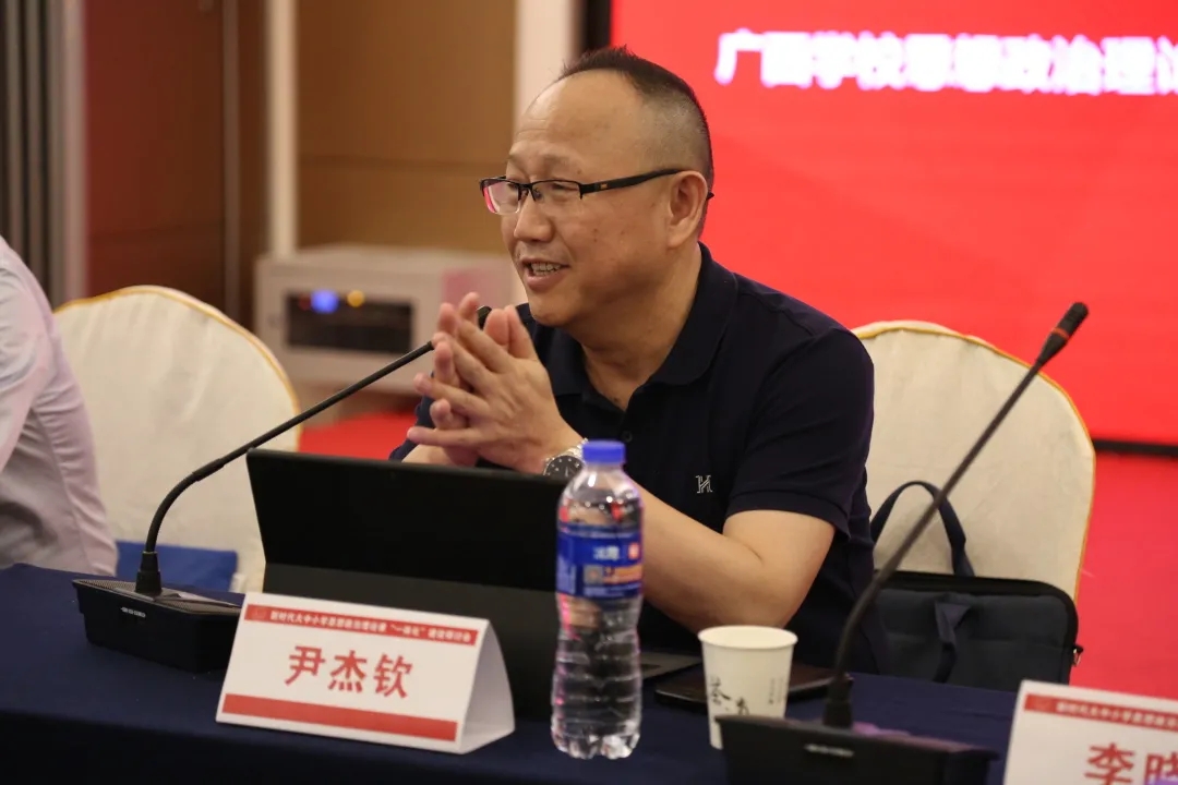 在专家研讨环节,梧州学院马院院长、博士生导师尹杰钦教授作了《共建·共育·共享:“一体化”建设的新格局、新方式、新成果》的专题发言,他认为新时代大中小学思想政治理论课“一体化”建设过程中,共建的主要问题是“一体化”格局尚未形成;共育的主要难点在“一体化”的基础理论研究遇到瓶颈;共享的主要堵点为“一体化”成果平台互通不畅。