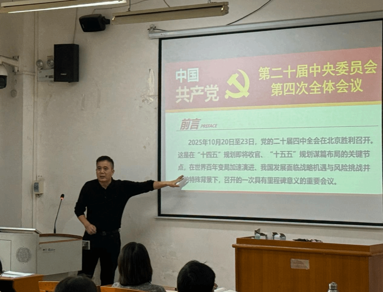 为深入学习领会党的二十届四中全会精神,切实把思想和行动统一到党中央决策部署上来,2025年11月7日下午,我院召开全体教职工政治理论学习会专题学习党的二十届四中全会精神,由学院院长唐景成教授作党的二十届四中全会精神专题辅导报告。