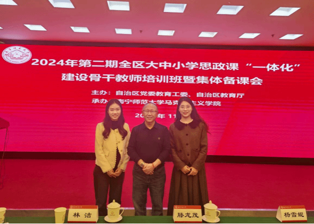 由自治区党委教育工委、自治区教育厅主办,南宁师范大学承办的2024年第二期全区大中小学思政课“一体化”建设骨干教师培训班暨集体备课会于11月25日-29日在南宁举行,我院尹杰钦教授应邀参加了会议并作了主题发言,杨媛媛教师参加了培训。