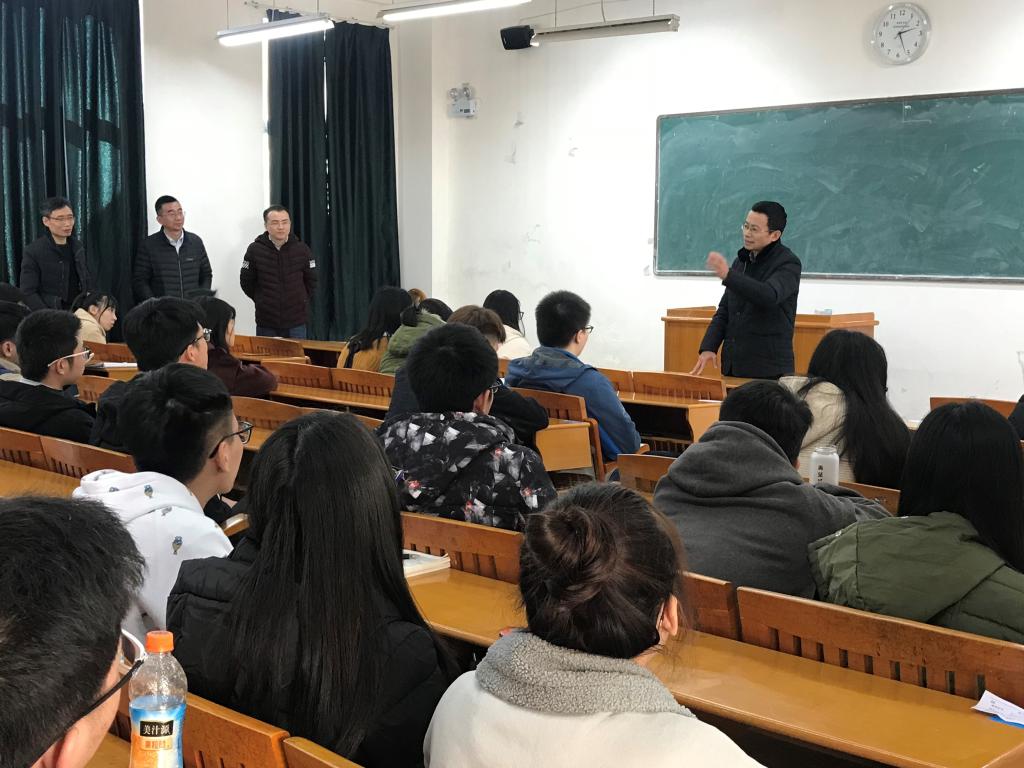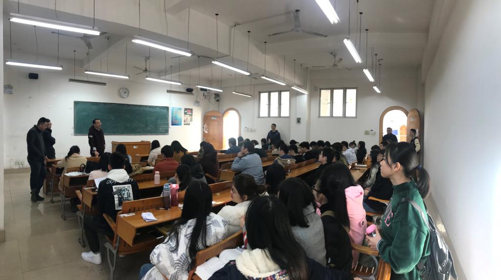 马克思主义学院学子将于近日奔赴南宁参加2019年硕士研究生入学考试,临行前,为了给各位考研学子做考前最后的叮嘱和鼓励,我院于12月18日在明理楼M601教室召开了考研践行会。我院党总支部副书记、副院长王振宇,副院长张朝松出席了本次活动。另外,哲学教研室全体教师、专业辅导员,哲学专业应届考生32人、2014级考生7人,以及部分低年级学生参加了本次活动。