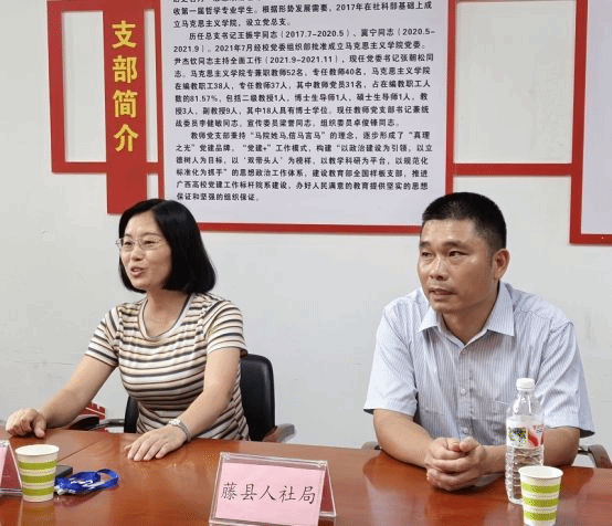 7月26日下午,学院邀请2025年梧州市中小学专任教师招聘会(梧州学院专场)的单位代表,开展校地协同育人交流活动。学院党委书记冀宁、蒙山县教育局局长刘厚天、苍梧县教育局副局长邹敏、藤县人社局副局长陈逾、岑溪市第二中学党委书记李宗文出席活动。活动由副院长欧琳宗主持。