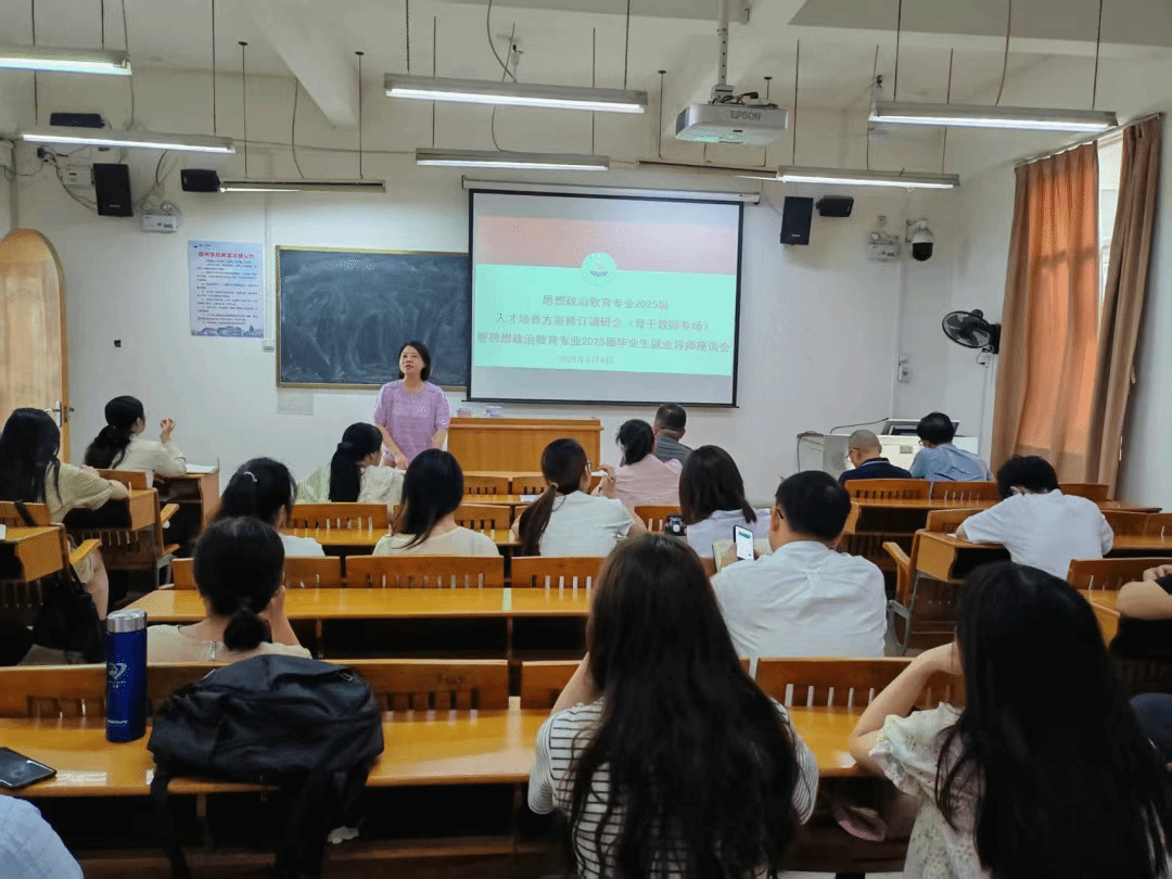 6月4日下午,我专业教研室在M206开展2025级人才培养方案修订研讨会暨2025届毕业生就业导师座谈会。会议由教研室主任欧琳宗主持,冀宁书记、唐景成院长、罗吉娟副书记以及全体教研室教师参与会议。