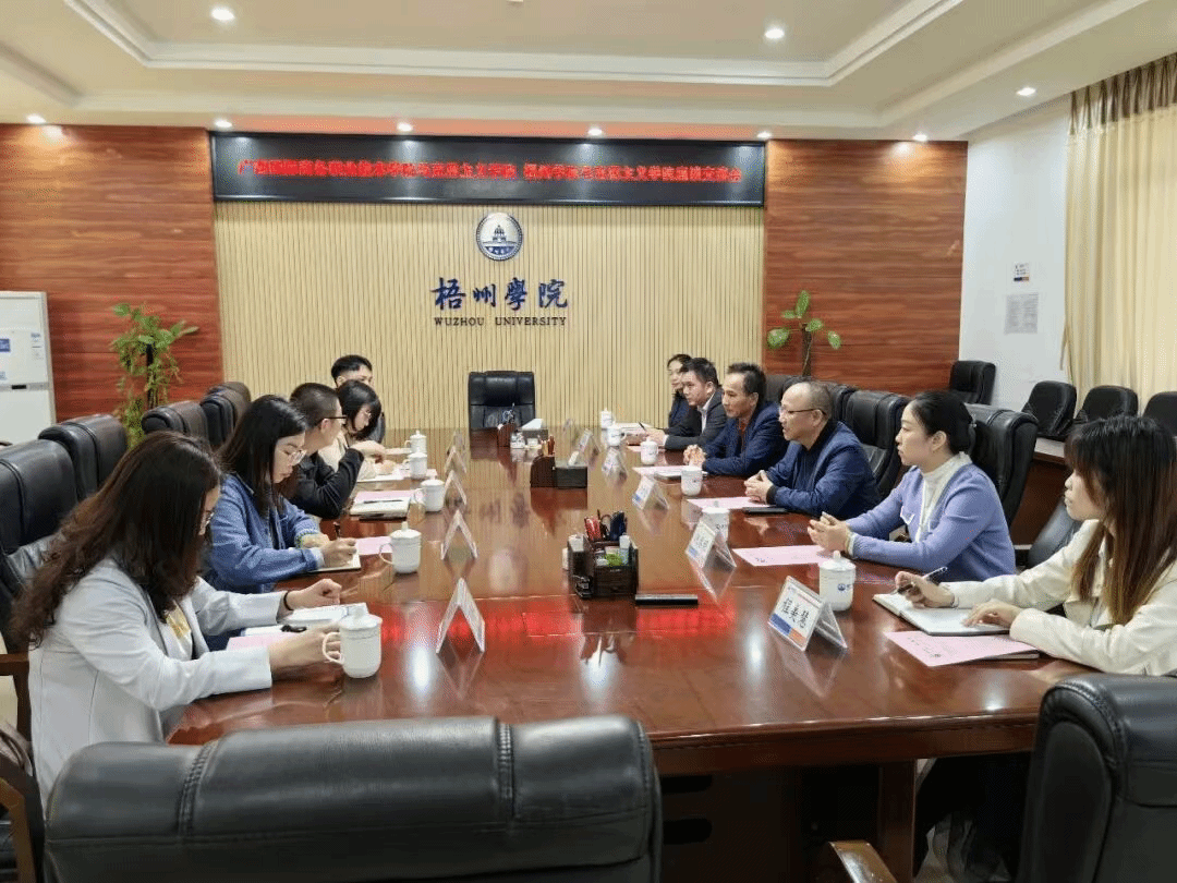4月6日下午,广西国际商务职业技术学院马克思主义学院院长、党总支书记梁芷铭教授一行5人来校交流座谈,会议在明理楼8楼第二会议室举行。学院党委书记张朝松等领导班子和相关课程教研室主任参加座谈会。