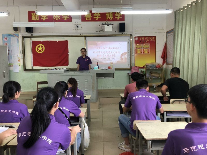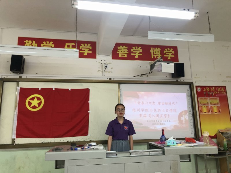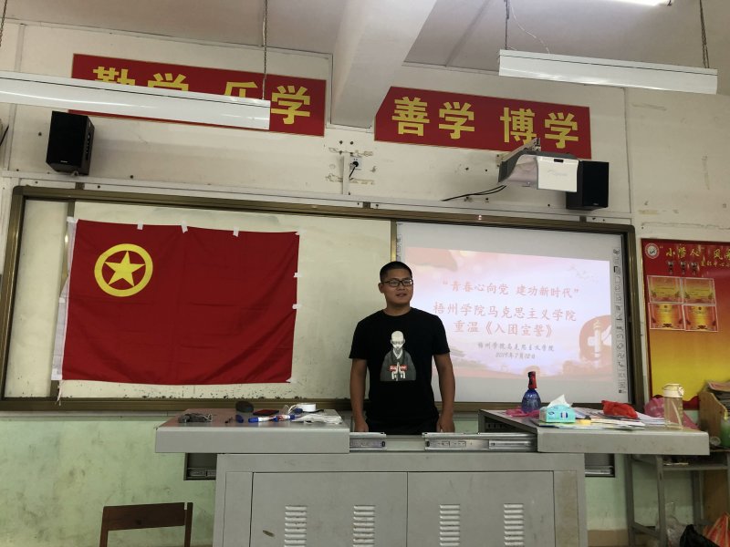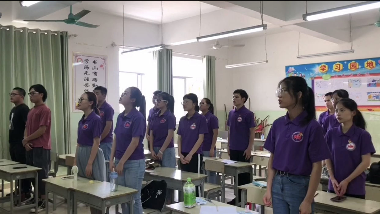 7月12日,梧州学院马克思主义学院暑期三下乡服务团队于夏郢镇中心小学开展了以“光荣啊,中国共青团员”为主题的活动。首先,马院和大数据学院的同学齐唱团歌《光荣啊,中国共青团》。其次,由共青团员代表凌丽萍同学带领大家重新宣读入团誓词,重温了入团成为共青团员的那一时刻,让同学们重新正视自己的团员身份。随后三位共青团员代表都发表了自己的学习心得体会,并表示作为一名共青团员我们要时刻铭记团员的职责和牢记中华民族的使命。