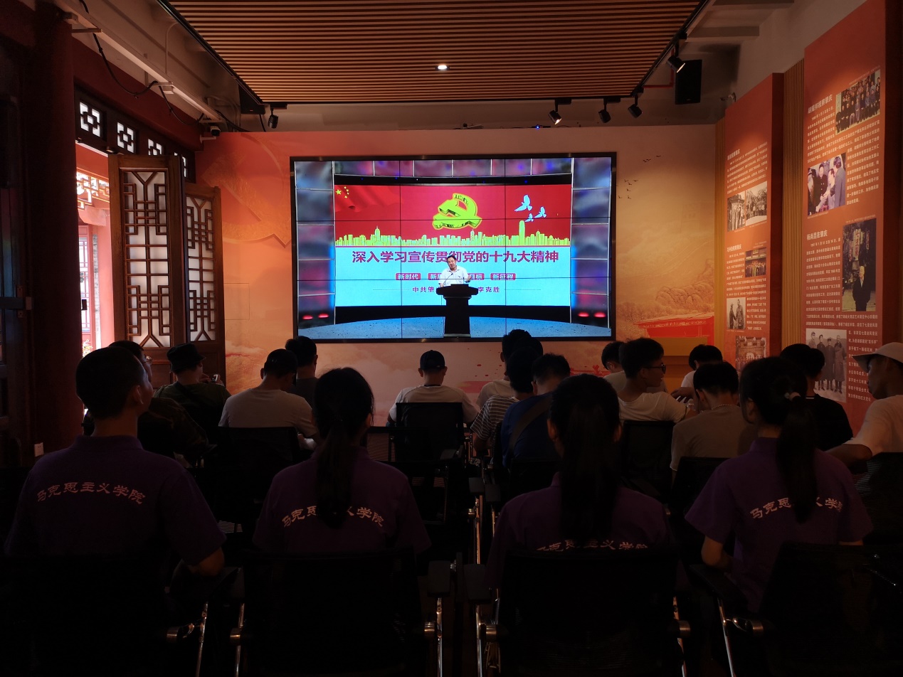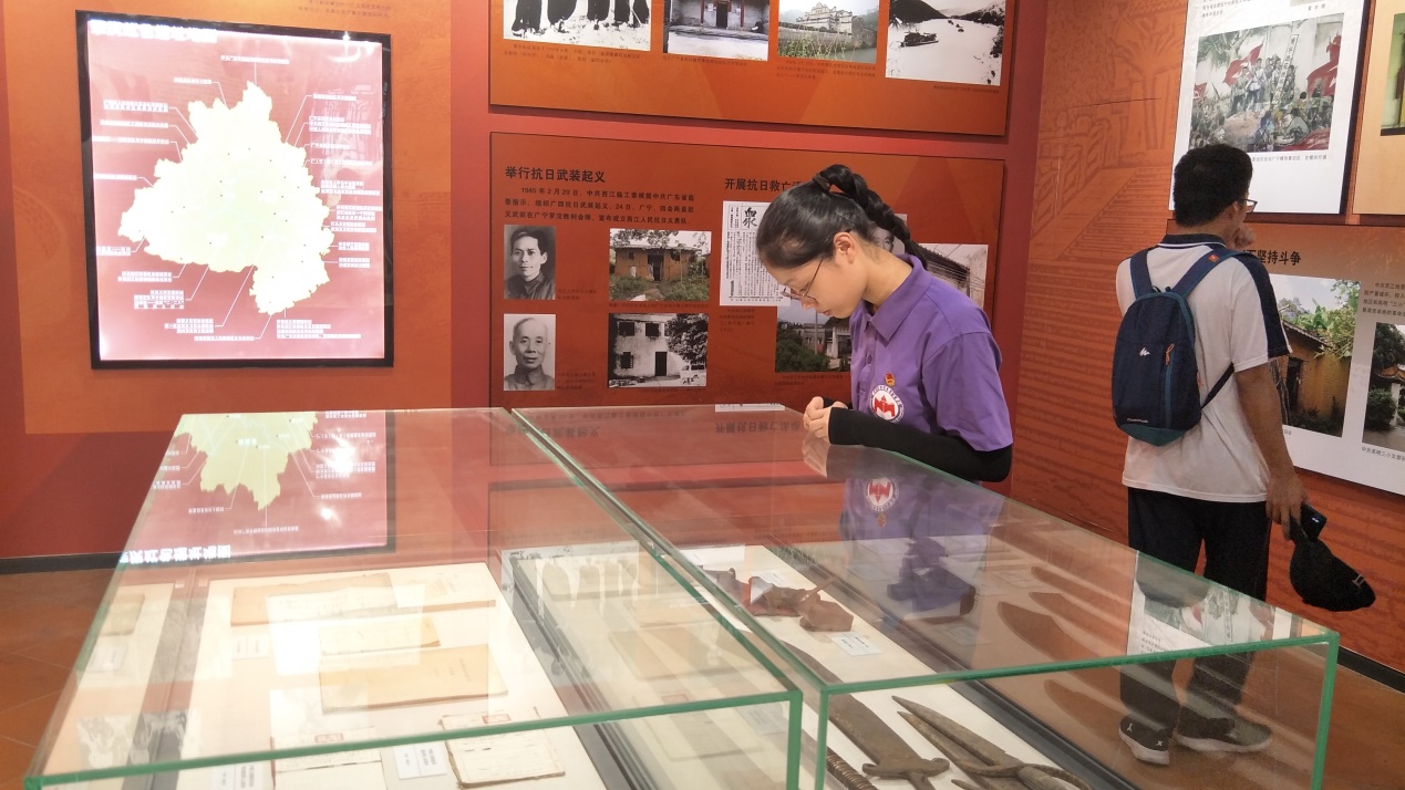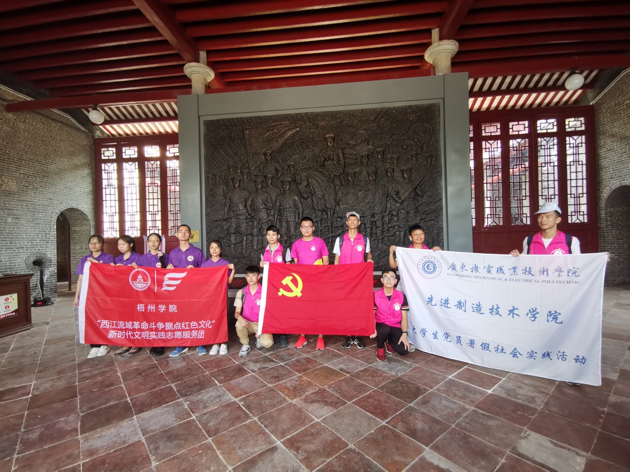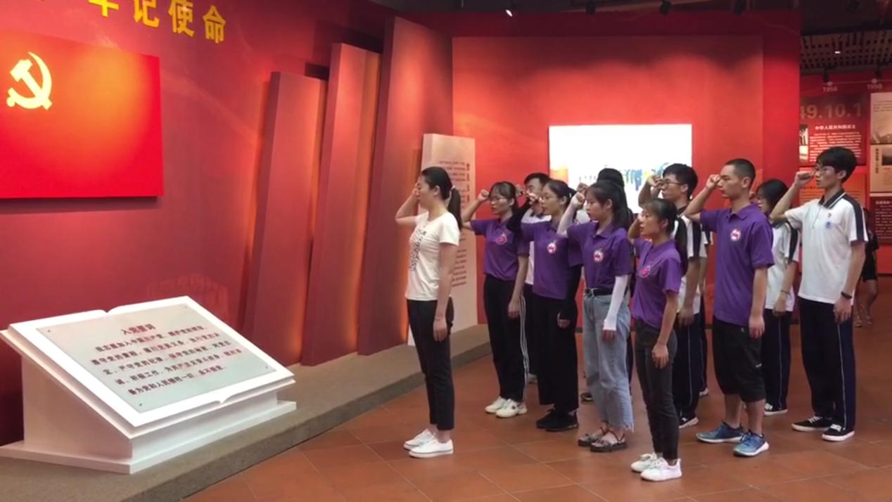 阅江楼1962年被列为广东省文物保护单位,设有“砚都瑰宝”、“铁军独立一雄团”、“谢志峰藏古端砚”等常设陈列,现是全国爱国主义教育示范基地。同学们认真参观了叶挺独立团团部纪念馆等展区,接受革命传统和爱国主义教育,聆听革命先烈的英勇事迹,感受党的光辉历史。参观期间更是遇见同是参加社会实践活动的广东机电职业技术学院的团队,并与他们进行实践交流。团队成员在张洁老师的带领下与肇庆学院党员一同重温入党誓词,弘扬铁军精神,传承红色基因,不忘初心,牢记使命。