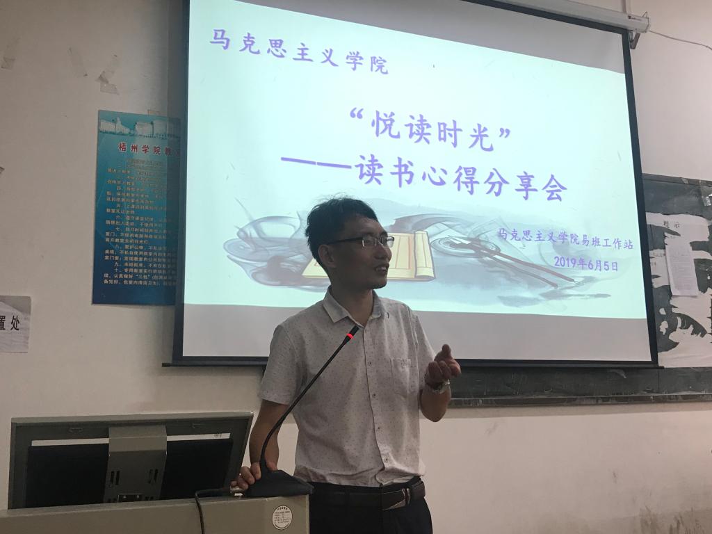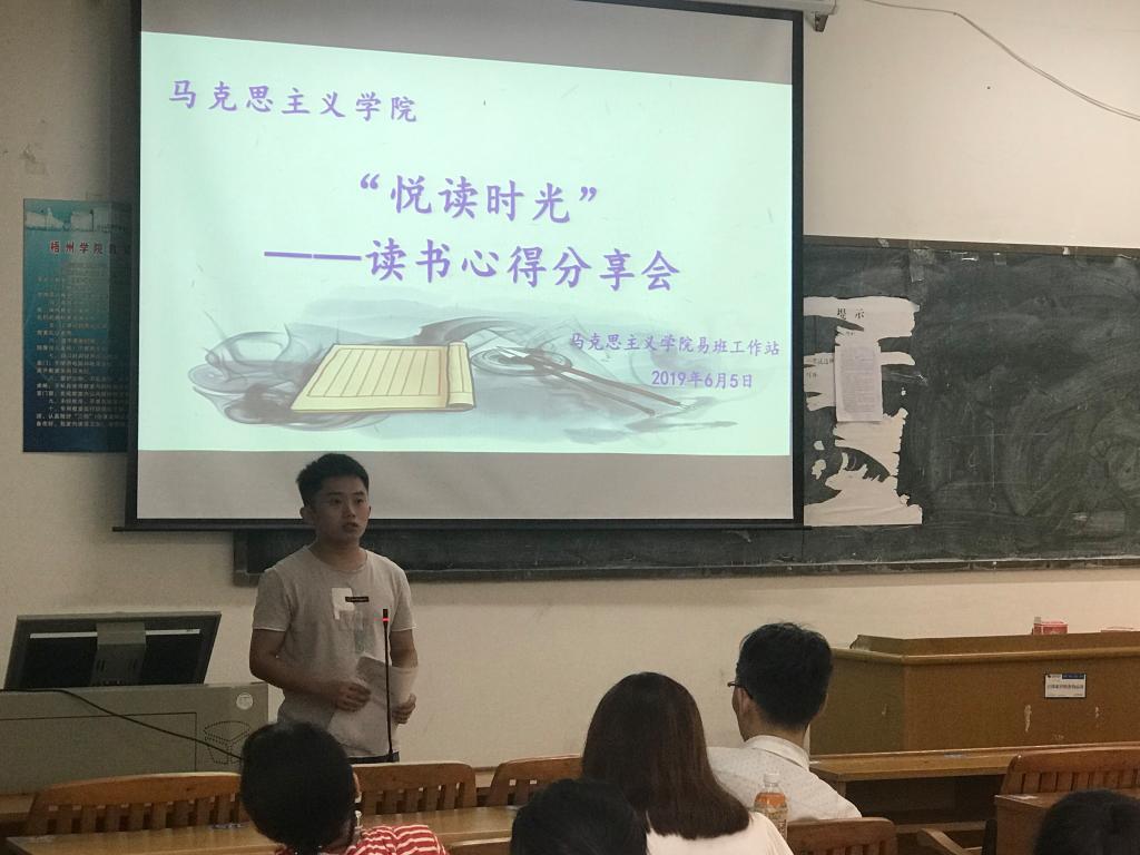 为培养马克思主义学院学生多读书、读好书、勤交流的良好习惯,6月5日上午,由马克思主义学院易班工作站主办的"悦读时光"品牌系列活动之读书心得分享会在明理楼N601教室举行。团委书记冼春妮、专业教师李建平担任此次读书分享会的点评人,16哲学班、17哲学班全体同学参加了此次活动。