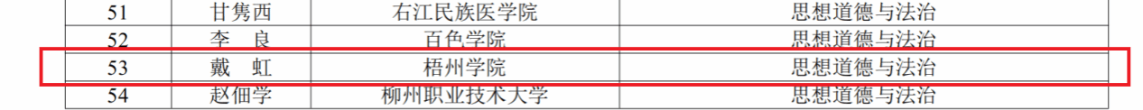 近日,自治区教育厅发布了《2025年全区高校思政课教师教学基本功比赛获奖名单的通知》(桂教思政〔2025〕19号),我院教师戴虹的《思想道德与法治》课程荣获2025年全区高校思政课教师教学基本功比赛二等奖。